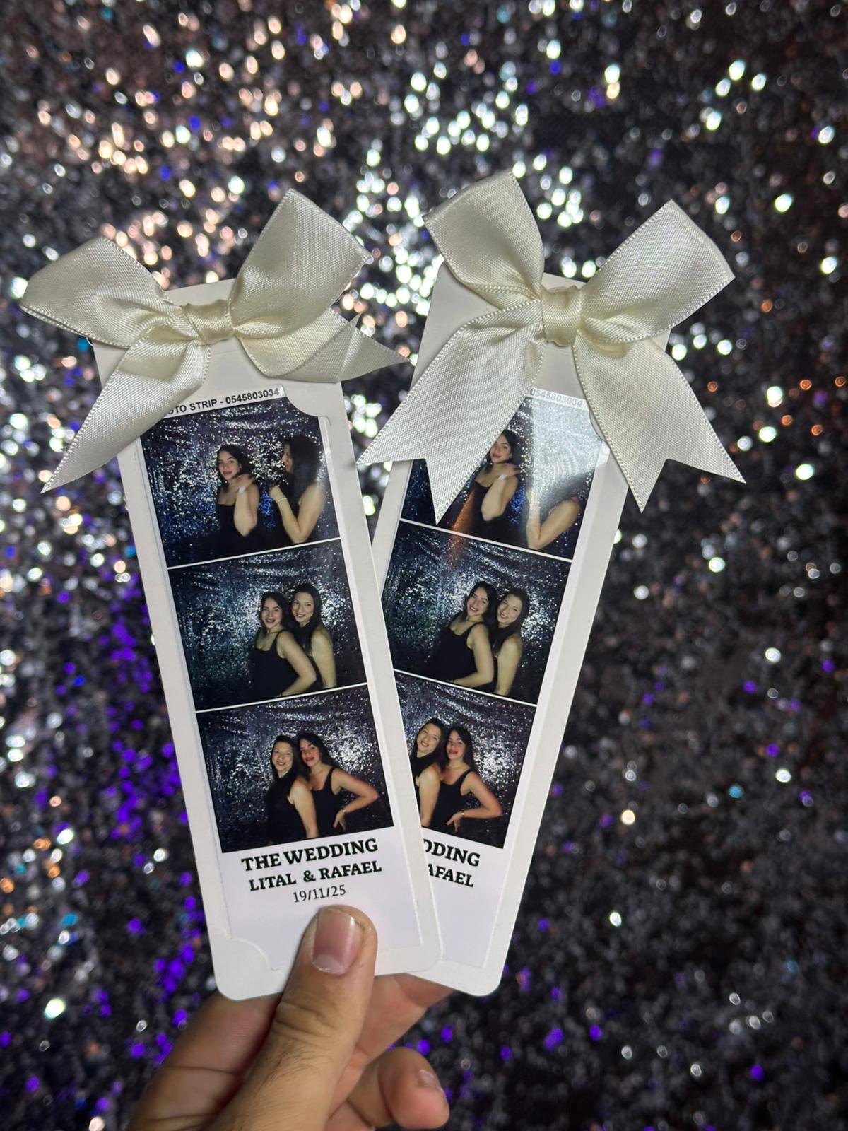 הסטריפים יוצאים באופן אוטומטי לאחר שהאורחים מצטלמים בעמדת הצילום המפוארת שלנו, עם כ-3 פוזיציות שונות וכמובן במסגרת ממותגת של האירוע שלכם.